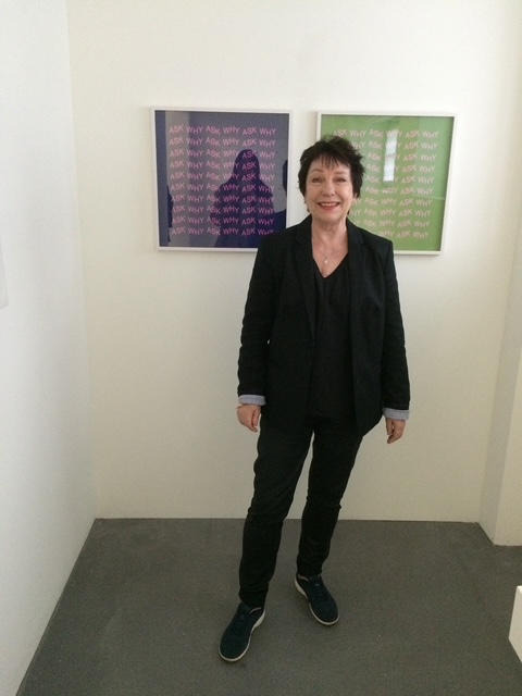Die Kulturjournalistin, Lyrikerin und Sprachkünstlerin Ingrid Isermann (1943, Hamburg, DE) ist u.a. Herausgeberin des Web-Kultur-Magazins «Literatur&Kunst» sowie Initiantin des «Ersten Zürcher Lyrik-Preises «Literatur&Kunst» 2012. Ihre Arbeit als bildende Künstlerin ist der visuellen Poesie gewidmet: Sie schreibt in farbenfrohen Bildern, verdichtet und intensiviert Worte und Wortbedeutungen, betont Format und Schriftart. In einem Bild zerlegt sie das Wort «viel/leicht» und verkehrt «leicht» durch eine fette Schrift ins Gegenteil. In einem anderen Bild spielt sie das Wort «Anima» in farblich verschiedenen Bändern durch. Hier ist die Wiederholung ein wichtiges Element – wie häufig in der Poesie, kann doch damit eine Aussage verstärkt oder ein neuer Sinn geschaffen werden. Manchmal lässt Ingrid Isermann die Buchstaben tanzen, stellt sie hoch oder tief und schafft so ein schillerndes Muster. Dies zeigen die beiden Lithografien «ASK WHY ASK WHY ASK WHY», zehnmal wiederholt in je einer neuen Linie, mit pinkfarbenen Buchstaben mal auf grünem, mal auf violettem Grund. Dabei wird der Akzent bald auf «ASK WHY», bald auf «Why ask» gesetzt. «Anatomie der Worte» nennt Isermann diese Verfahren nach ihrer gleichnamigen, 2014 erschienenen Publikation.
